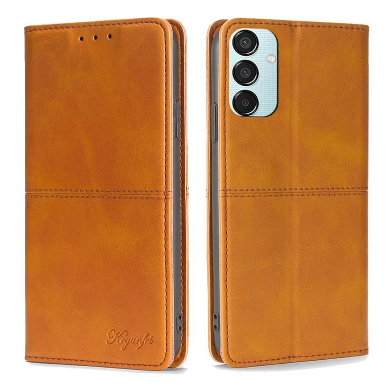 Για Samsung Galaxy M15 5G Αγελάδα υφή μαγνητική δερμάτινη θήκη τηλεφώνου (ανοιχτό καφέ)