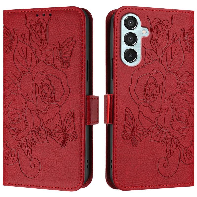 For Samsung Galaxy M15 5G / F15 5G Global Embossed Rose RFID Anti-theft Leather Phone Case(Red)