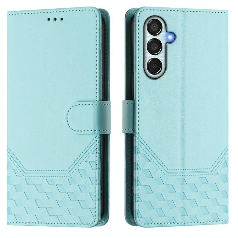 Θήκη τηλεφώνου Samsung Galaxy M15 5G / F15 5G από δέρμα με ανάγλυφο κηρήθρας και τεχνολογία RFID (Μέντας πράσινο)