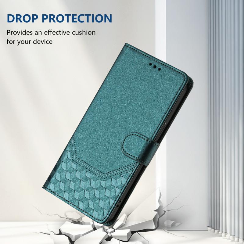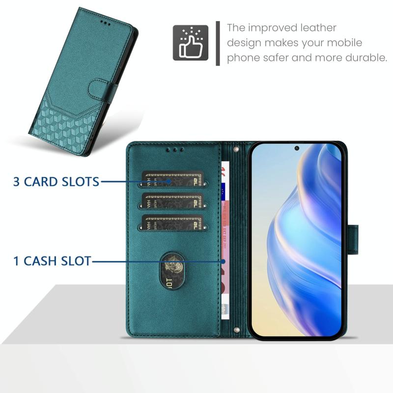 Θήκη τηλεφώνου Samsung Galaxy M15 5G / F15 5G από δέρμα με ανάγλυφο κηρήθρας και τεχνολογία RFID (Ανοιχτό Μωβ)