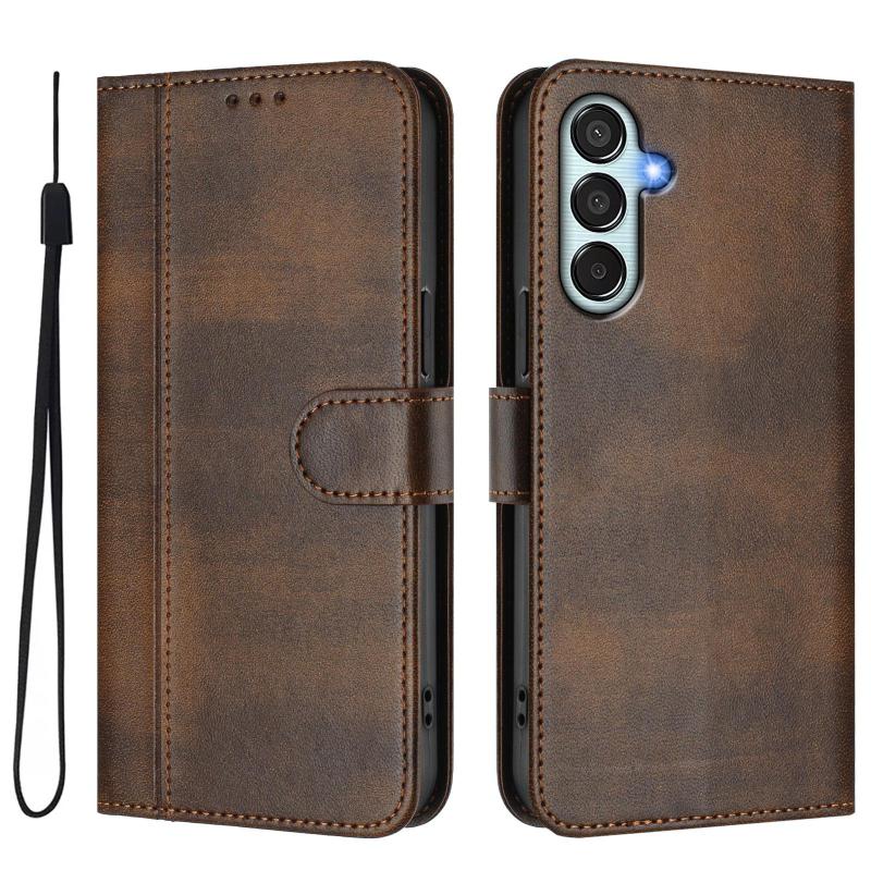 For Samsung Galaxy M15 5G / F15 5G Line Splicing Buckle Retro Leather Phone Case(Brown)