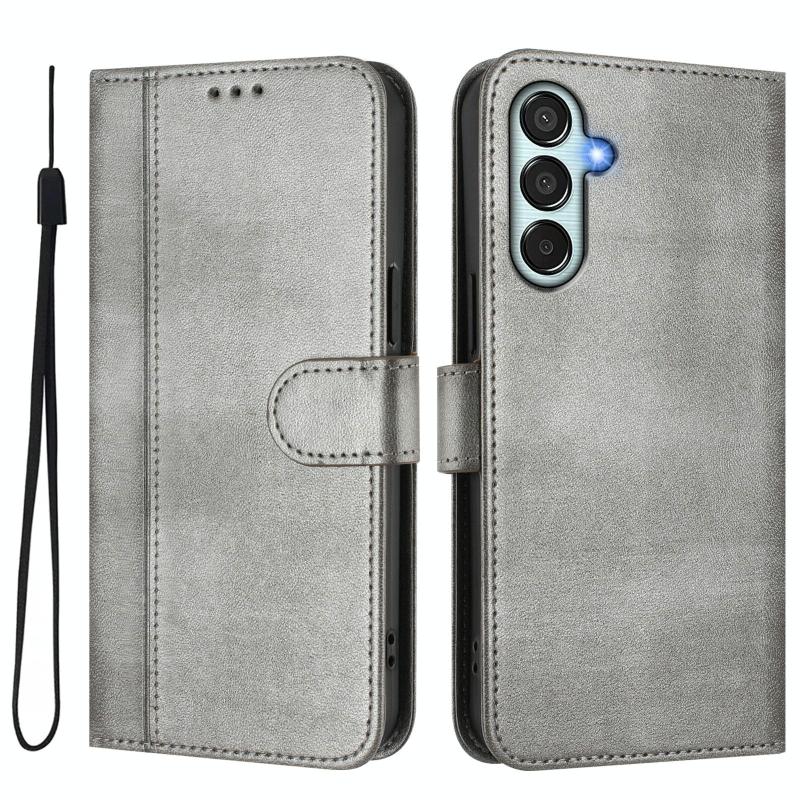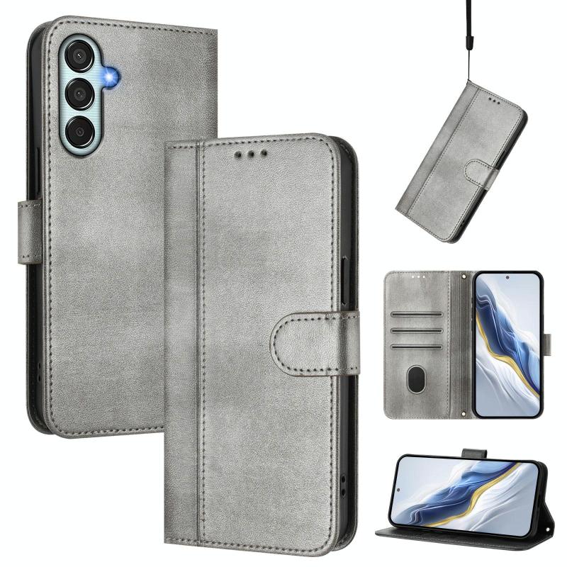 For Samsung Galaxy M15 5G / F15 5G Line Splicing Buckle Retro Leather Phone Case(Grey)