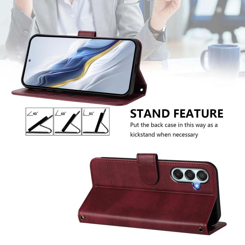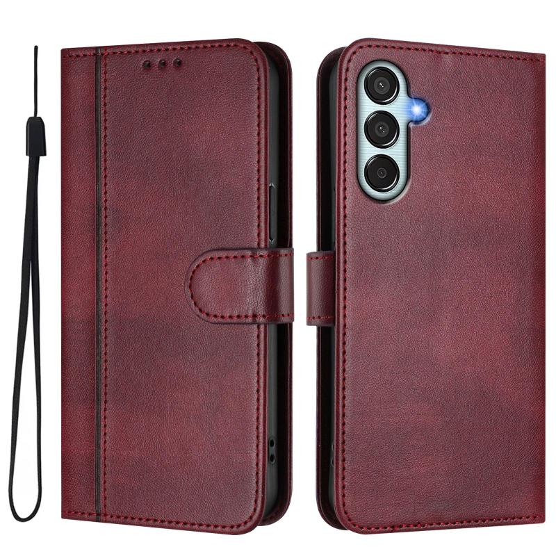 For Samsung Galaxy M15 5G / F15 5G Line Splicing Buckle Retro Leather Phone Case(Wine Red)