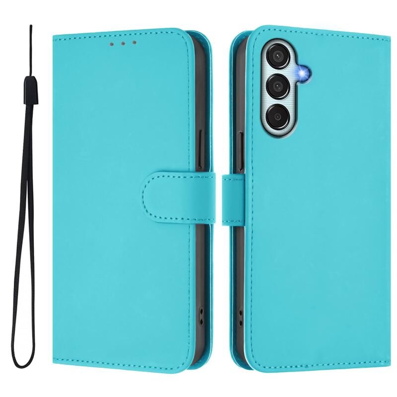 Για το Samsung Galaxy M15 5G / F15 5G δέρμα αίσθηση στερεό χρώμα δερμάτινη θήκη τηλεφώνου με κορδόνι (Lake Blue)