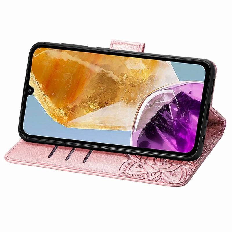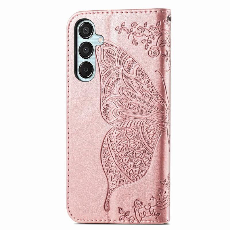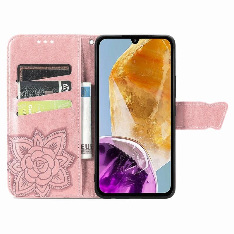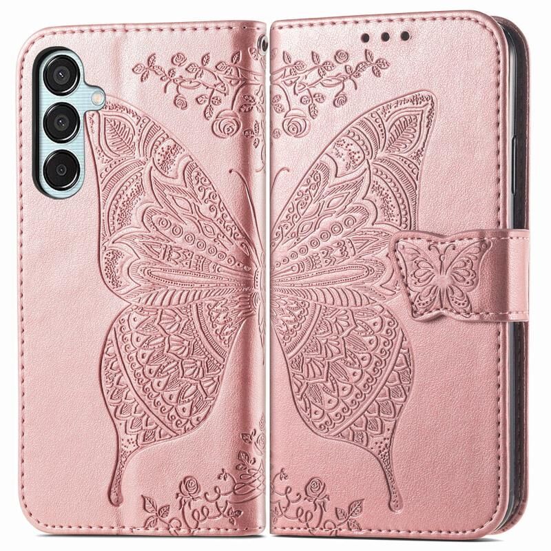 Για Samsung Galaxy M15 πεταλούδα αγάπη λουλούδι ανάγλυφο δερμάτινη θήκη τηλεφώνου (Rose Gold)