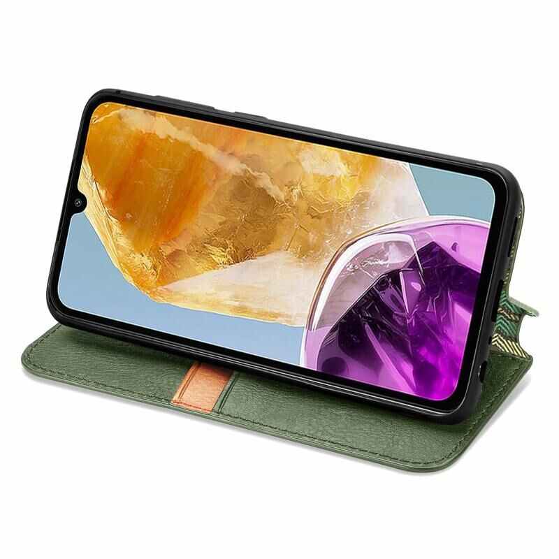 Για Samsung Galaxy M15 κυβικό πλέγμα πρεσαριστή μαγνητική δερμάτινη θήκη τηλεφώνου (πράσινο)