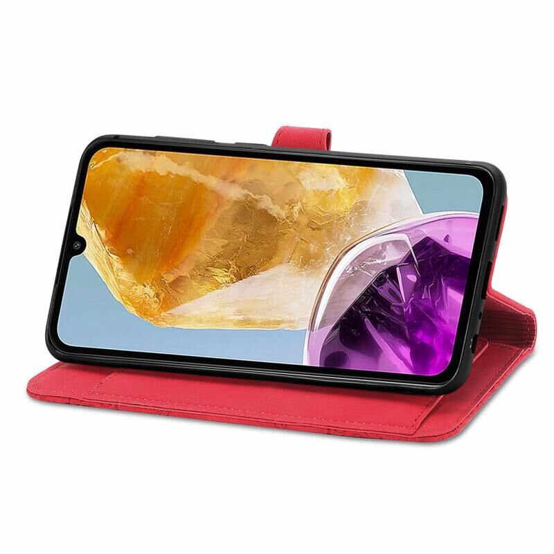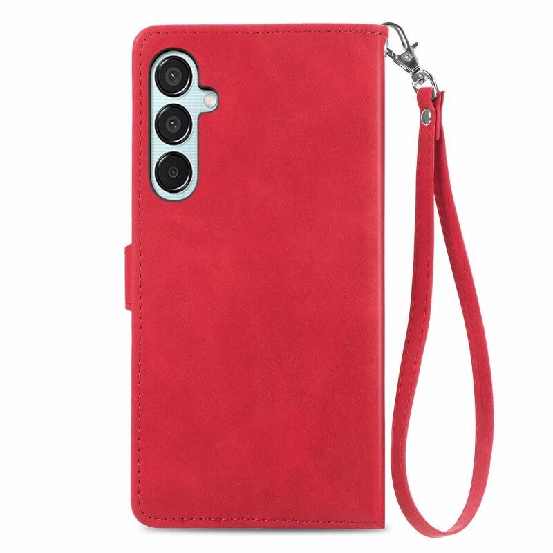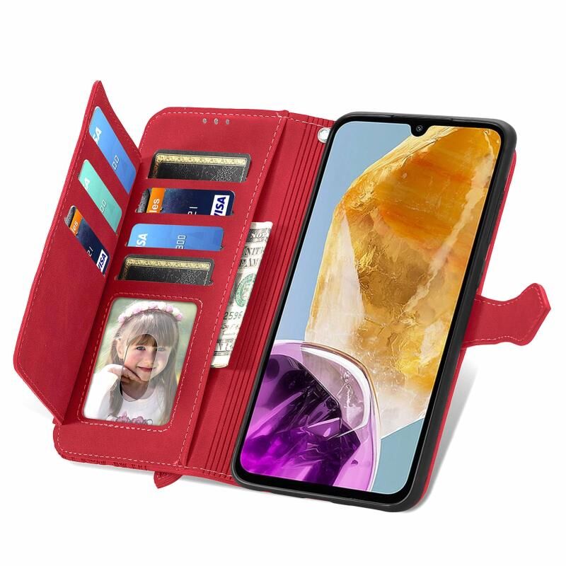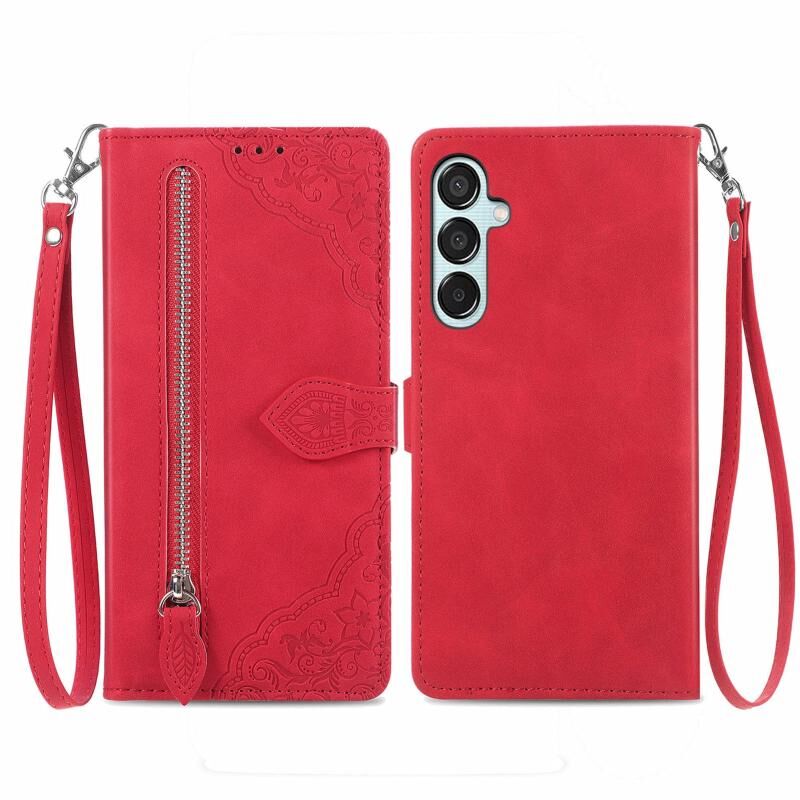 Για Samsung Galaxy M15 ανάγλυφο λουλούδι φερμουάρ δερμάτινη θήκη τηλεφώνου (κόκκινο)