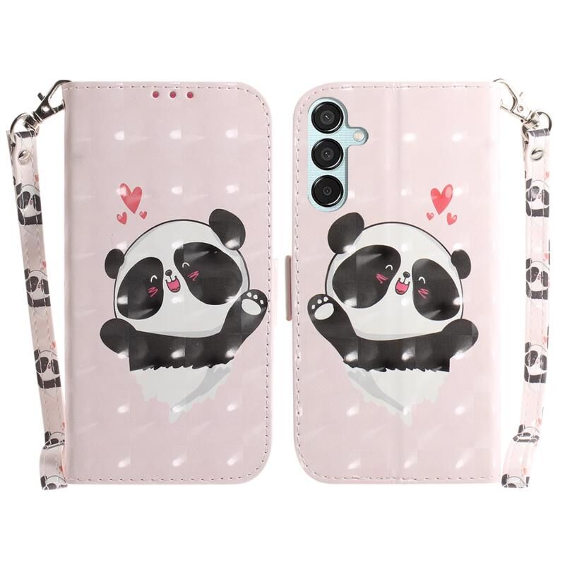 Θήκη τηλεφώνου δερμάτινη, οριζόντια, αναδιπλούμενη, με έγχρωμο 3D σχέδιο για Samsung Galaxy M15/F15 (Heart Panda)