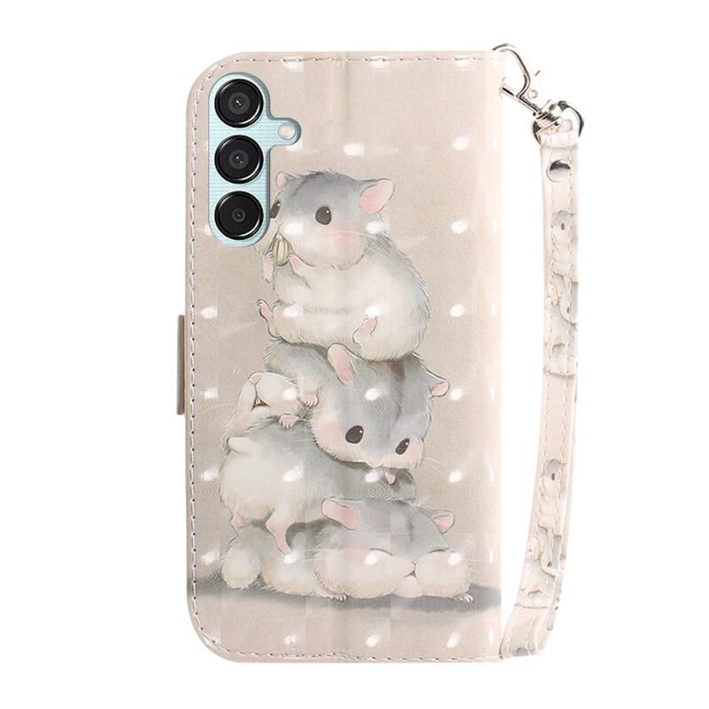 Θήκη τηλεφώνου δερμάτινη, οριζόντια, αναδιπλούμενη, με έγχρωμο 3D σχέδιο για Samsung Galaxy M15/F15 (Σκιουράκια)