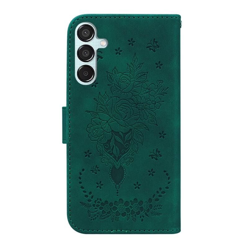 Για Samsung Galaxy M15/F15 πεταλούδα Rose ανάγλυφο δέρμα υπόθεση τηλεφώνου (πράσινο)