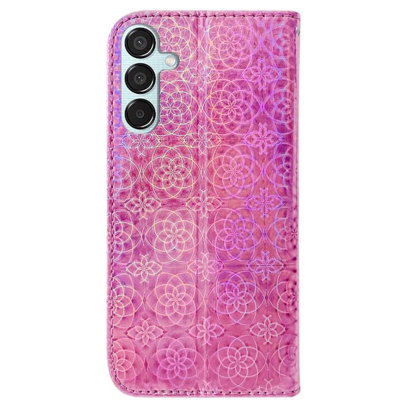 Για Samsung Galaxy M15/F15 Πολύχρωμο μαγνητική πόρπη δερμάτινη θήκη τηλεφώνου (ροζ)