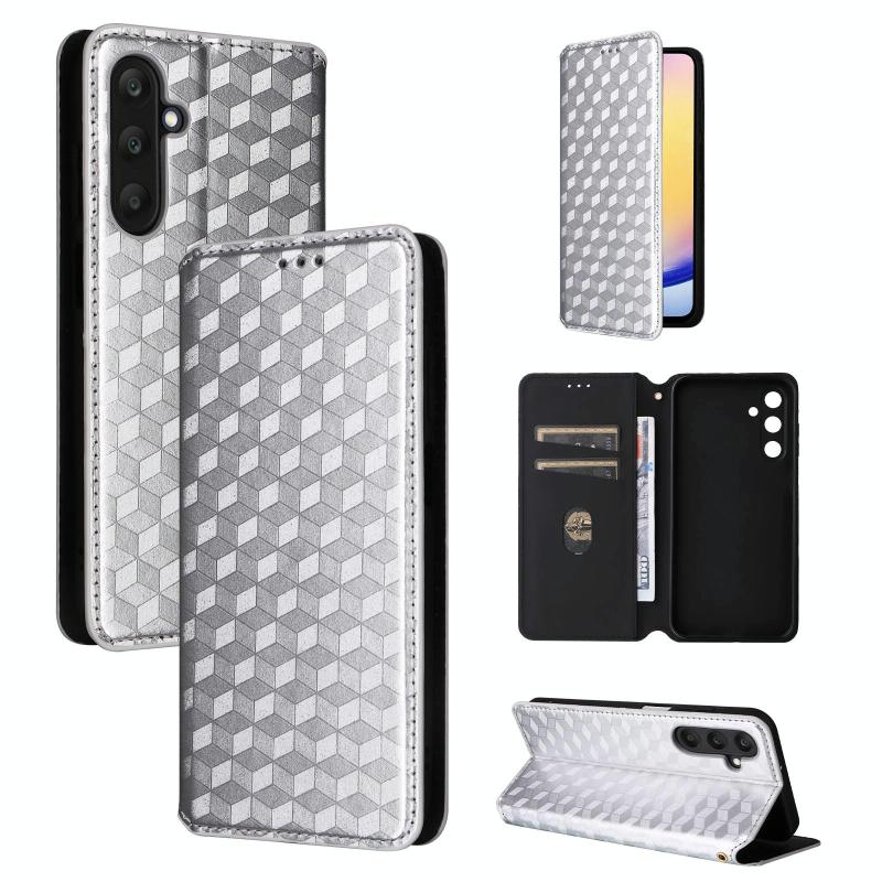 For Samsung Galaxy M15 / F15 Cubic Grid Texture Flip Leather Phone Case(Silver)