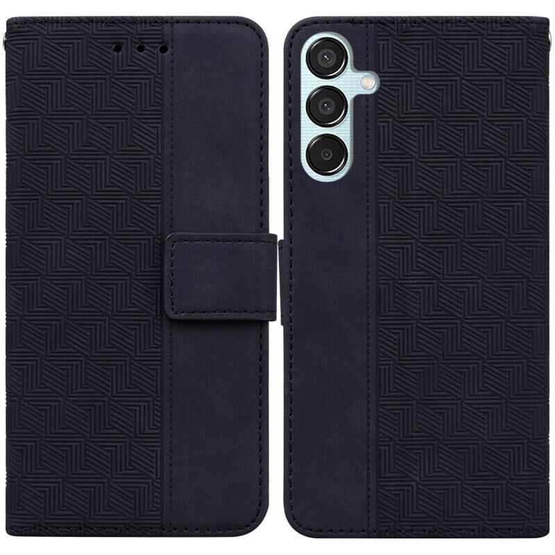 Για Samsung Galaxy M15/F15 Γεωμετρική ανάγλυφη δερμάτινη θήκη τηλεφώνου (Μαύρο)