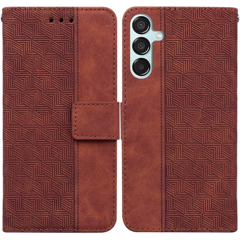 Για Samsung Galaxy M15/F15 Γεωμετρική ανάγλυφη δερμάτινη θήκη τηλεφώνου (Καφέ)