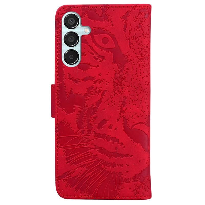 Θήκη τηλεφώνου Samsung Galaxy M15/F15 από δέρμα με σχέδιο ανάγλυφου τίγρη (Κόκκινο)