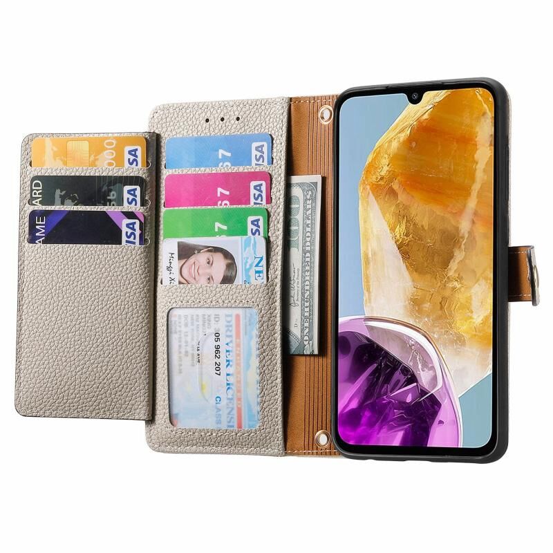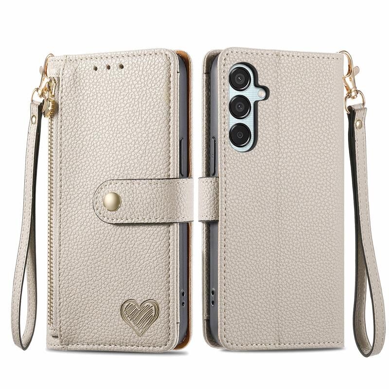 Για Samsung Galaxy M15 αγάπη φερμουάρ Lanyard δέρμα τηλέφωνο υπόθεση (γκρι)