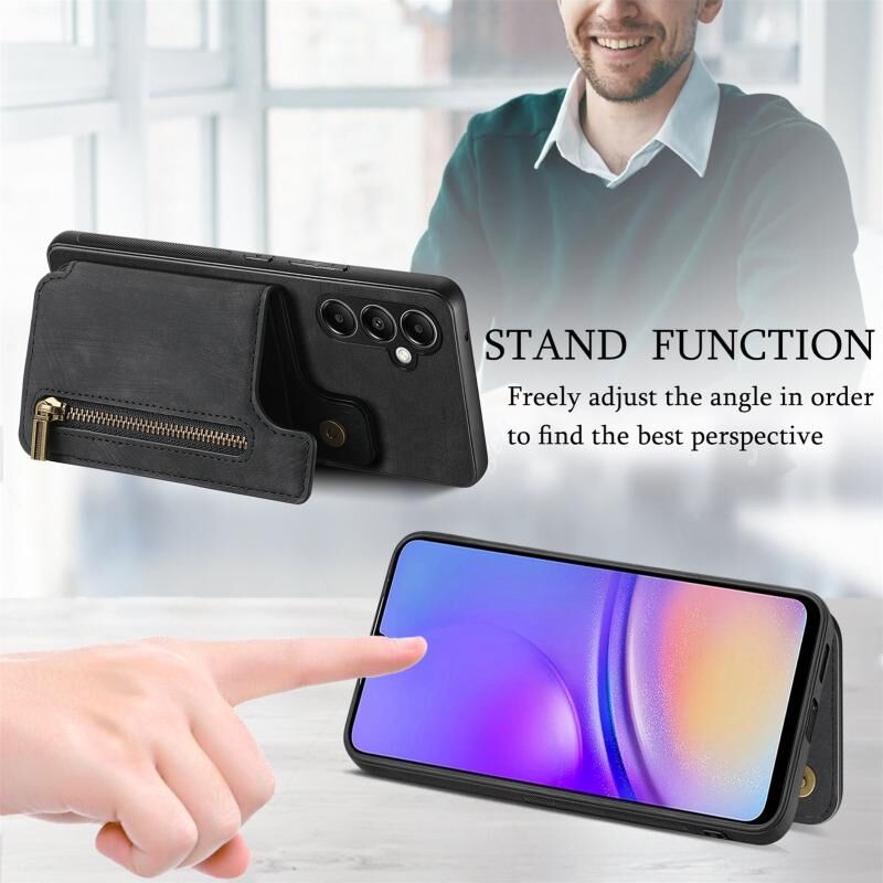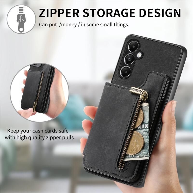 Για Samsung Galaxy M15 Ρετρό δέρμα φερμουάρ πορτοφόλι πίσω θήκη τηλεφώνου (μαύρο)