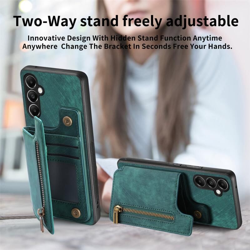 Για Samsung Galaxy M15 Ρετρό δέρμα φερμουάρ πορτοφόλι πίσω θήκη τηλεφώνου (πράσινο)