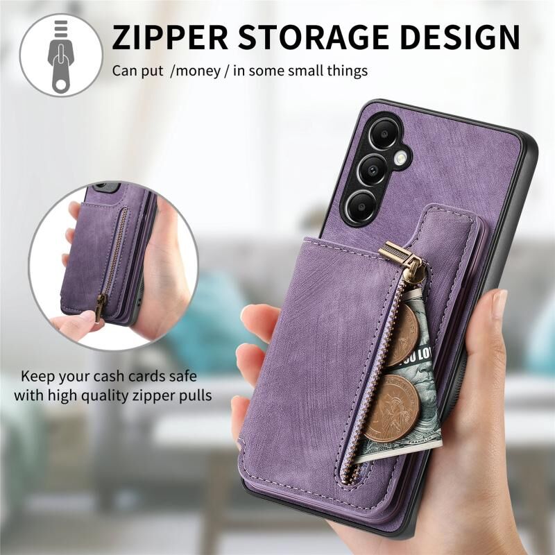 Για Samsung Galaxy M15 Ρετρό δέρμα φερμουάρ πορτοφόλι πίσω θήκη τηλεφώνου (μωβ)