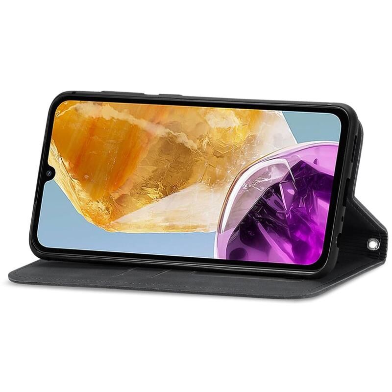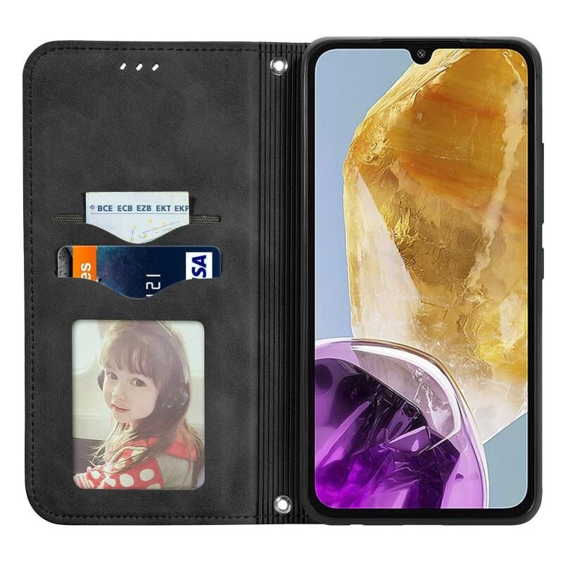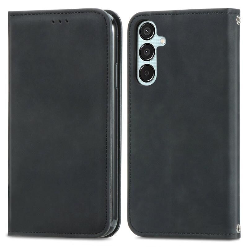 Για Samsung Galaxy M15 Retro δέρμα αίσθηση μαγνητική δερμάτινη θήκη τηλεφώνου (μαύρο)