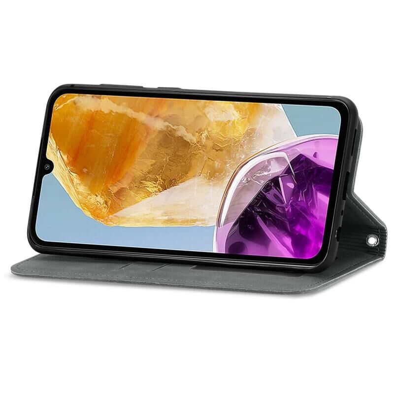 Για Samsung Galaxy M15 Retro δέρμα αίσθηση μαγνητική δερμάτινη θήκη τηλεφώνου (γκρι)