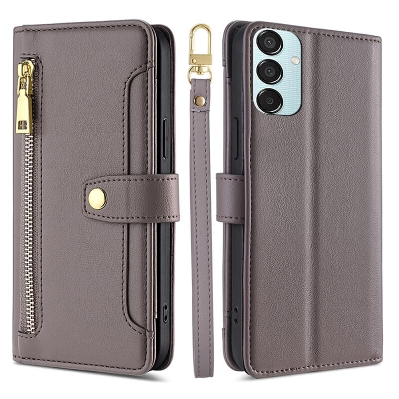Για Samsung Galaxy M15 Πρόβατα Υφή Cross-body φερμουάρ πορτοφόλι δερμάτινη θήκη τηλεφώνου (γκρι)