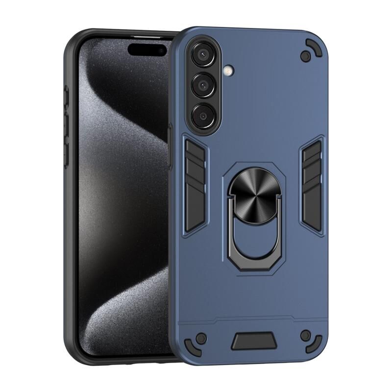 Θήκη κινητού τηλεφώνου για Samsung Galaxy M15 με μεταλλική βάση δακτυλιδιού ανθεκτική στις κρούσεις (Μπλε)