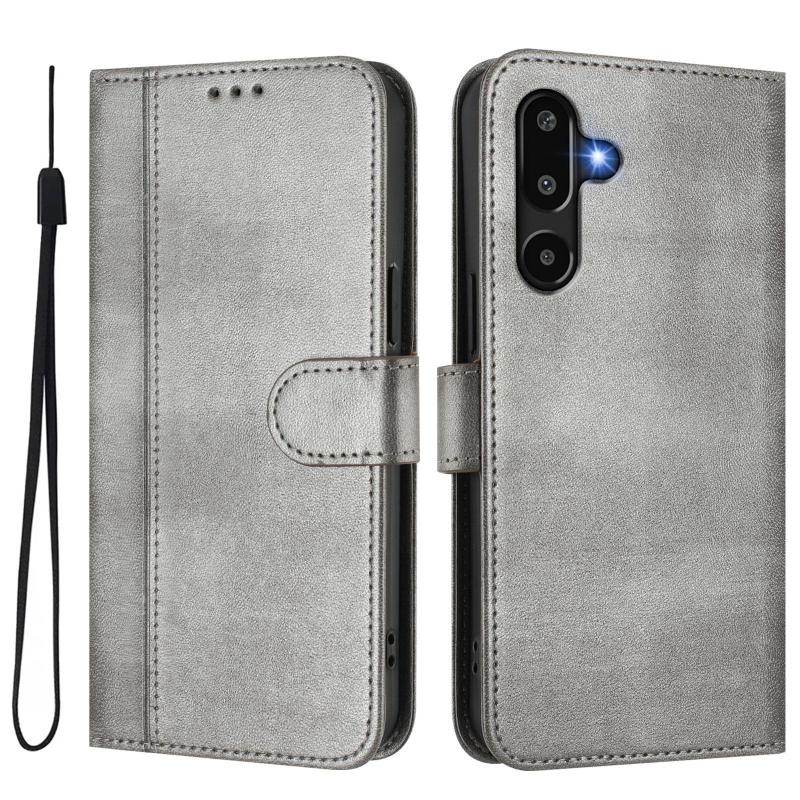 For Samsung Galaxy M16 5G / F16 5G Line Splicing Buckle Retro Leather Phone Case(Grey)