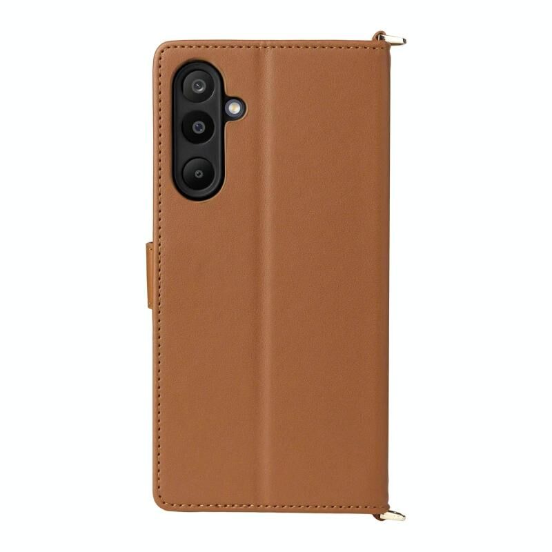 Θήκη τηλεφώνου Samsung Galaxy M16 5G / F16 5G πολυλειτουργική από δέρμα με 6 υποδοχές για κάρτες και λουρί καρπού (Καφέ)