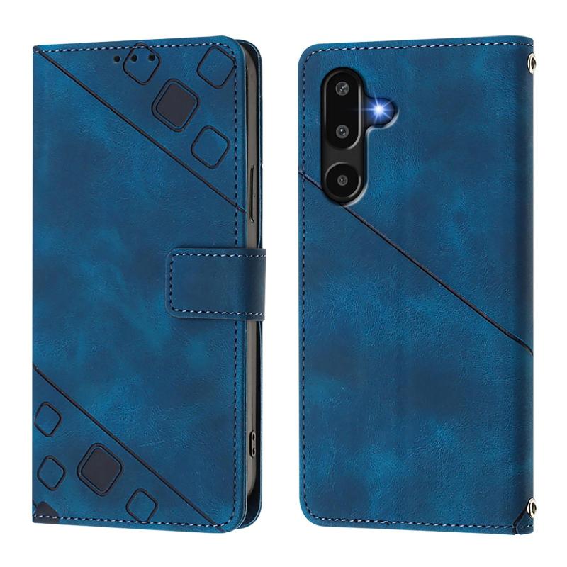 For Samsung Galaxy M16 5G Global Skin-feel Embossed Leather Phone Case(Blue)