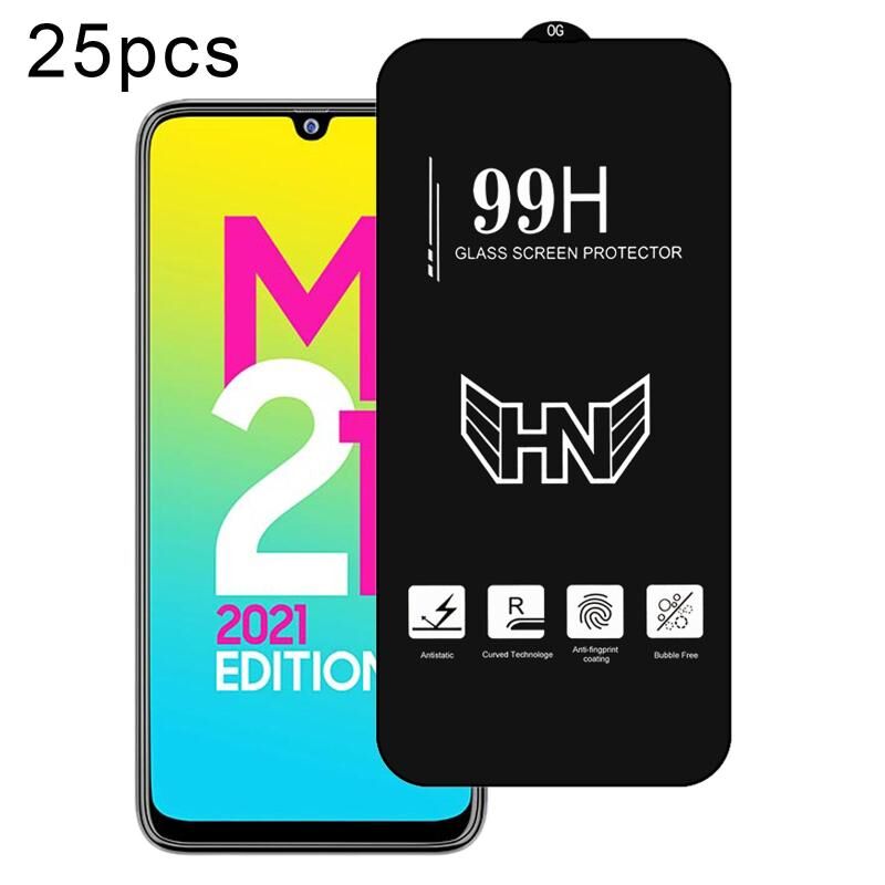 For Samsung Galaxy M21 2021 25pcs High Aluminum Large Arc Full Screen Tempered Glass Film