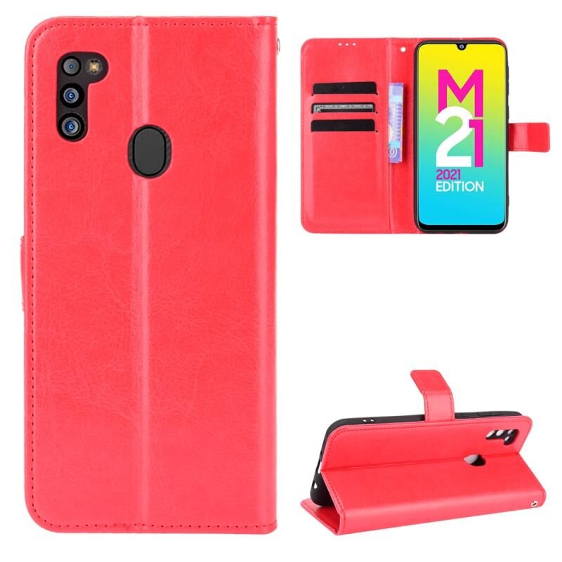 Για Samsung Galaxy M21 2021 Crazy Horse Υφή οριζόντια Flip δερμάτινη θήκη με θήκη & υποδοχές για κάρτες & κορδόνι (κόκκινο)