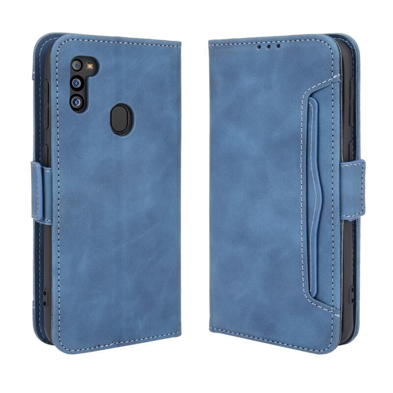 Για Samsung Galaxy M21 2021 δέρμα αίσθηση μοσχάρι μοτίβο οριζόντια Flip δερμάτινη θήκη με υποδοχή & υποδοχές για κάρτες & πλαίσιο φωτογραφιών (μπλε)