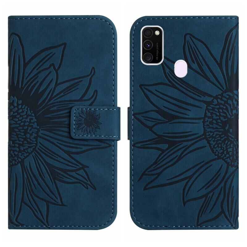 Για Samsung Galaxy M21 / M30S Skin Feel Sun Flower μοτίβο Flip δέρμα τηλέφωνο υπόθεση με κορδόνι (Inky Blue)