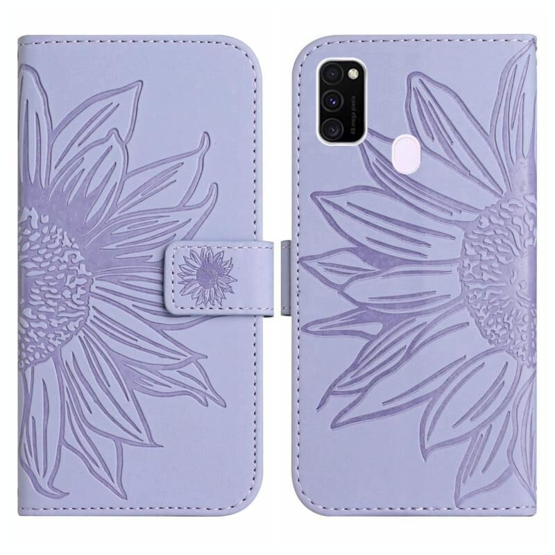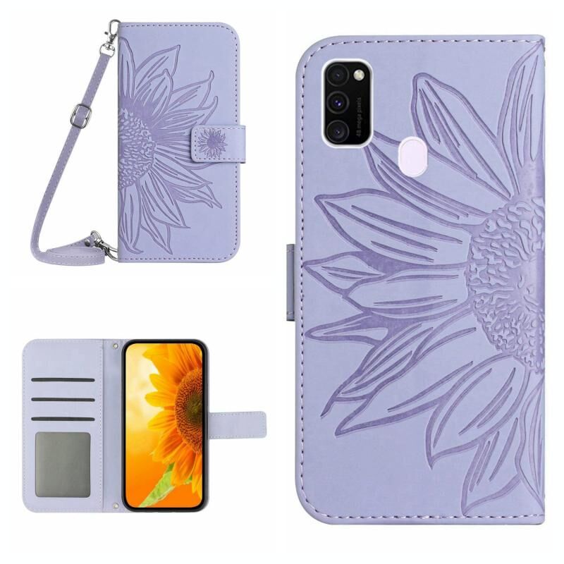 Για Samsung Galaxy M21 / M30S Skin Feel Sun Flower μοτίβο Flip δέρμα τηλέφωνο υπόθεση με κορδόνι (μωβ)