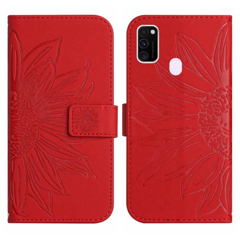 Για Samsung Galaxy M21 / M30S δέρμα αισθάνονται ήλιος λουλούδι μοτίβο Flip δερμάτινη θήκη τηλεφώνου με κορδόνι (κόκκινο)