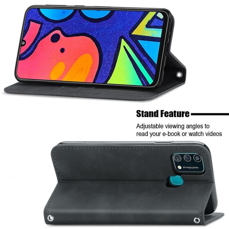 Για Samsung Galaxy M21s/F41/M31 Retro Skin Feel Business μαγνητική οριζόντια Flip δερμάτινη θήκη με θήκη & υποδοχές για κάρτες & πορτοφόλι & κορνίζα φωτογραφιών (Μαύρο)
