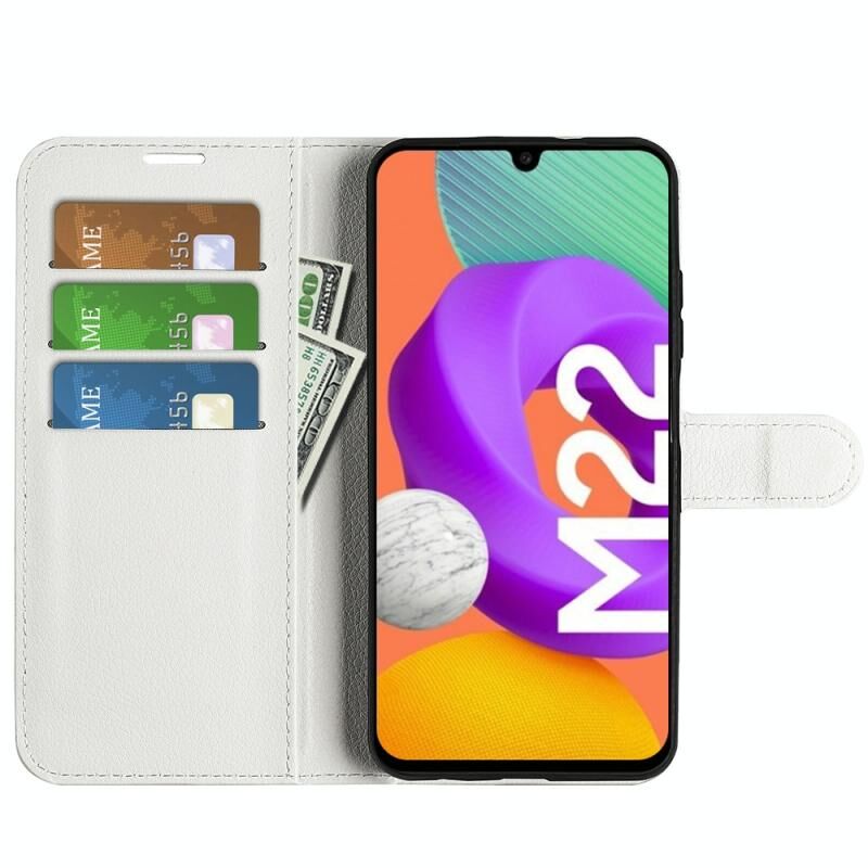 Για Samsung Galaxy M22 Litchi Υφή Οριζόντια Flip Προστατευτική θήκη με θήκη & υποδοχές για κάρτες & πορτοφόλι (Λευκό)