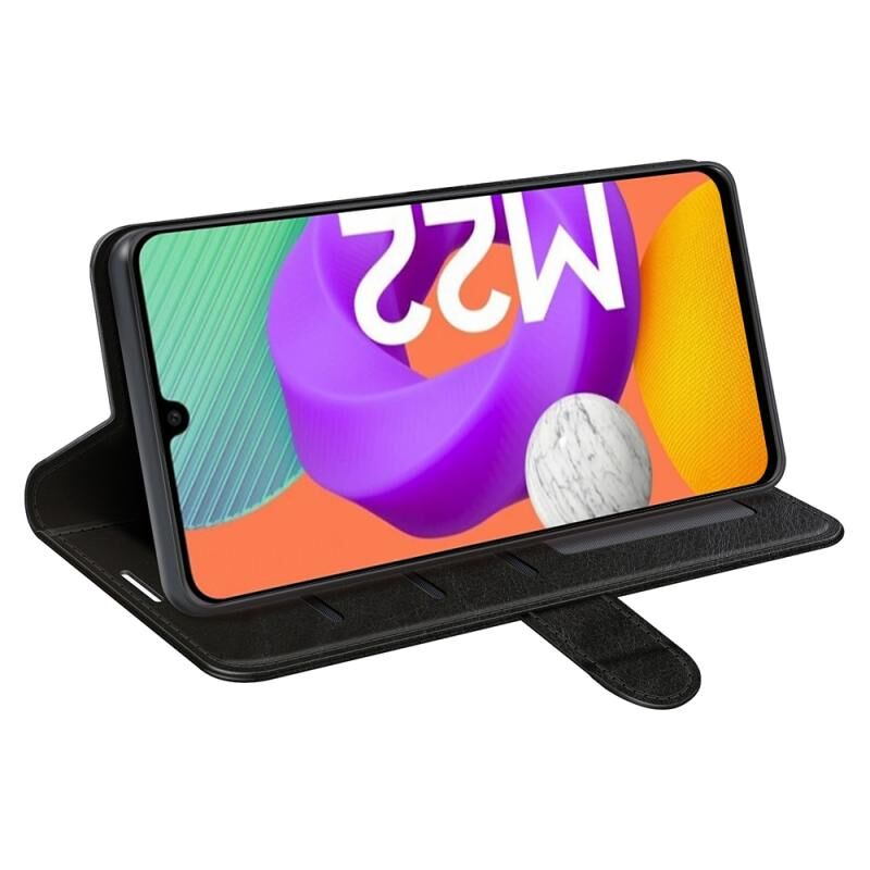 Για Samsung Galaxy M22 R64 Υφή ενιαία οριζόντια Flip προστατευτική θήκη με υποδοχή & υποδοχές για κάρτες & πορτοφόλι & πλαίσιο φωτογραφιών (μαύρο)
