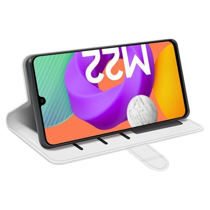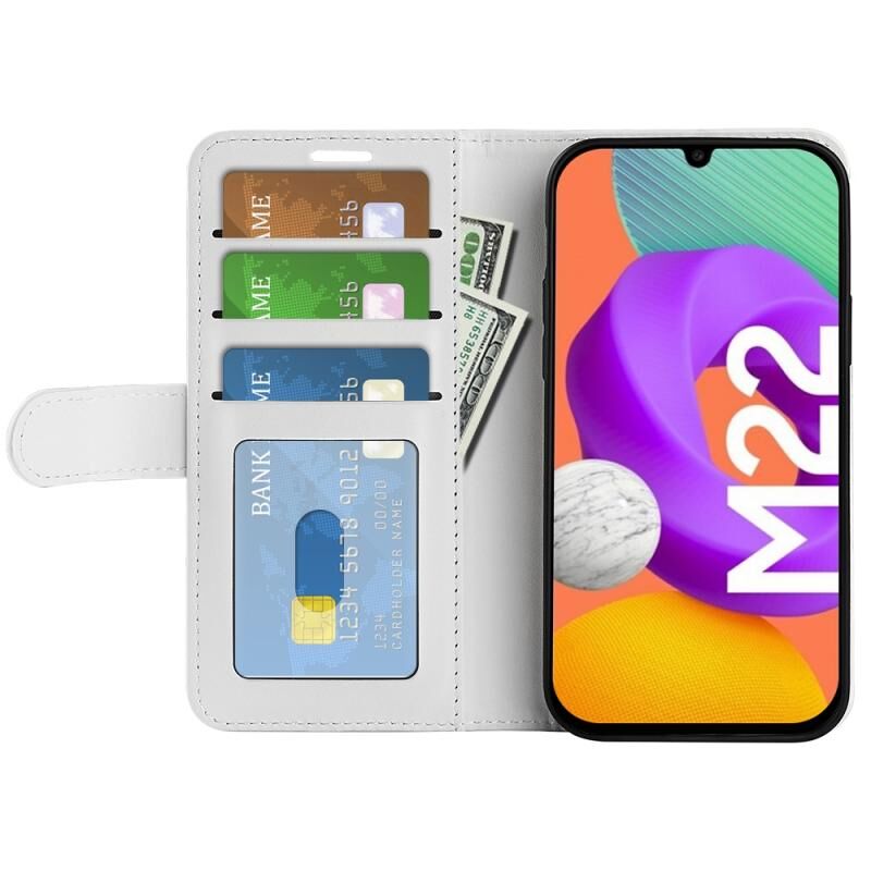 Για Samsung Galaxy M22 R64 Υφή ενιαία οριζόντια Flip προστατευτική θήκη με υποδοχή & υποδοχές για κάρτες & πορτοφόλι & πλαίσιο φωτογραφιών (Λευκό)