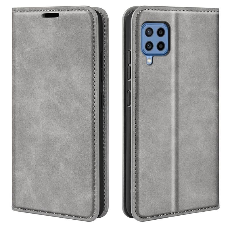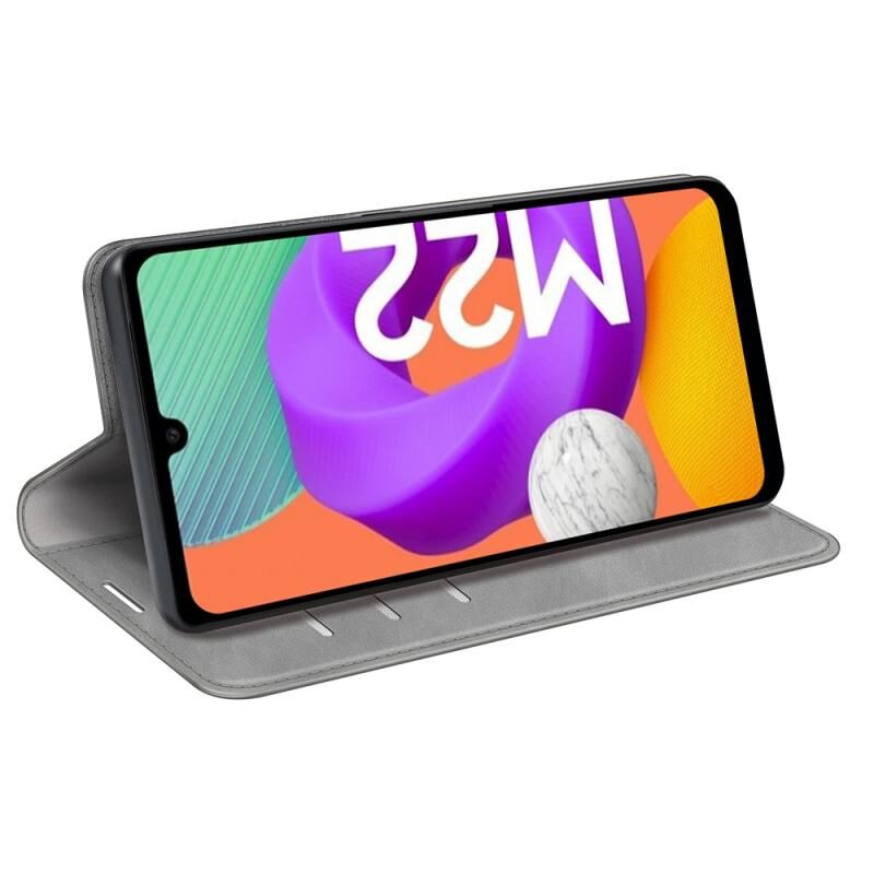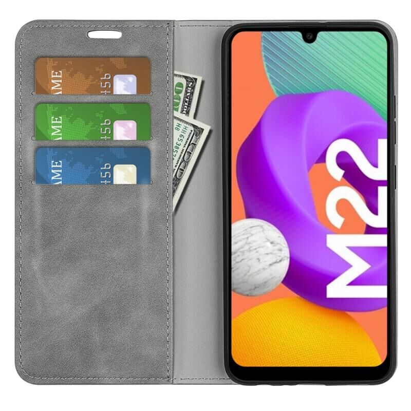 Για Samsung Galaxy M22 Retro-skin Μαγνητική δερμάτινη θήκη αναρρόφησης με θήκη & υποδοχές καρτών & πορτοφόλι (γκρι)