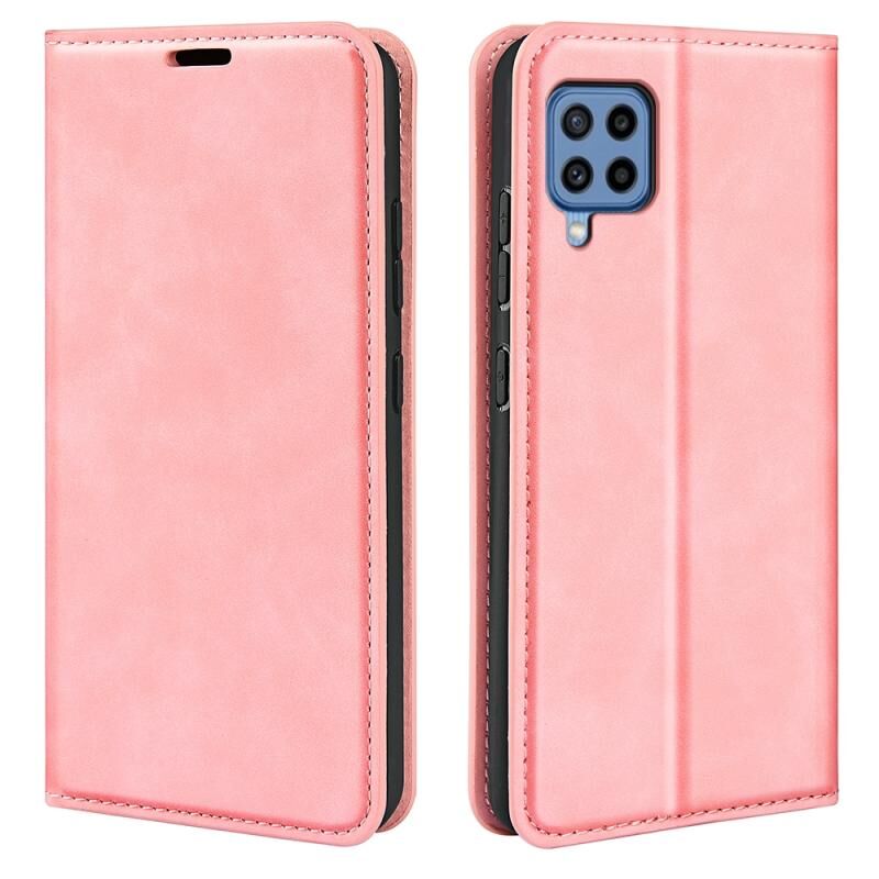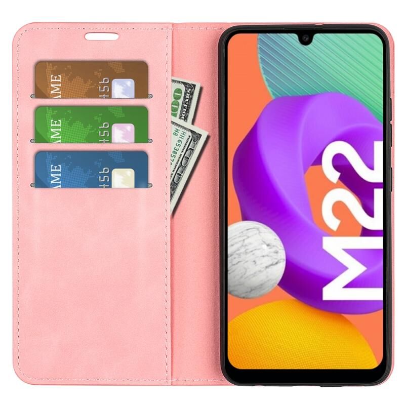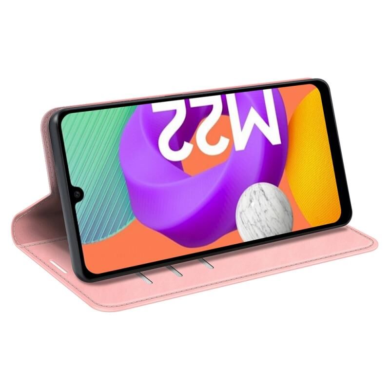 Για Samsung Galaxy M22 Retro-skin Μαγνητική δερμάτινη θήκη αναρρόφησης με θήκη & υποδοχές καρτών & πορτοφόλι (ροζ)