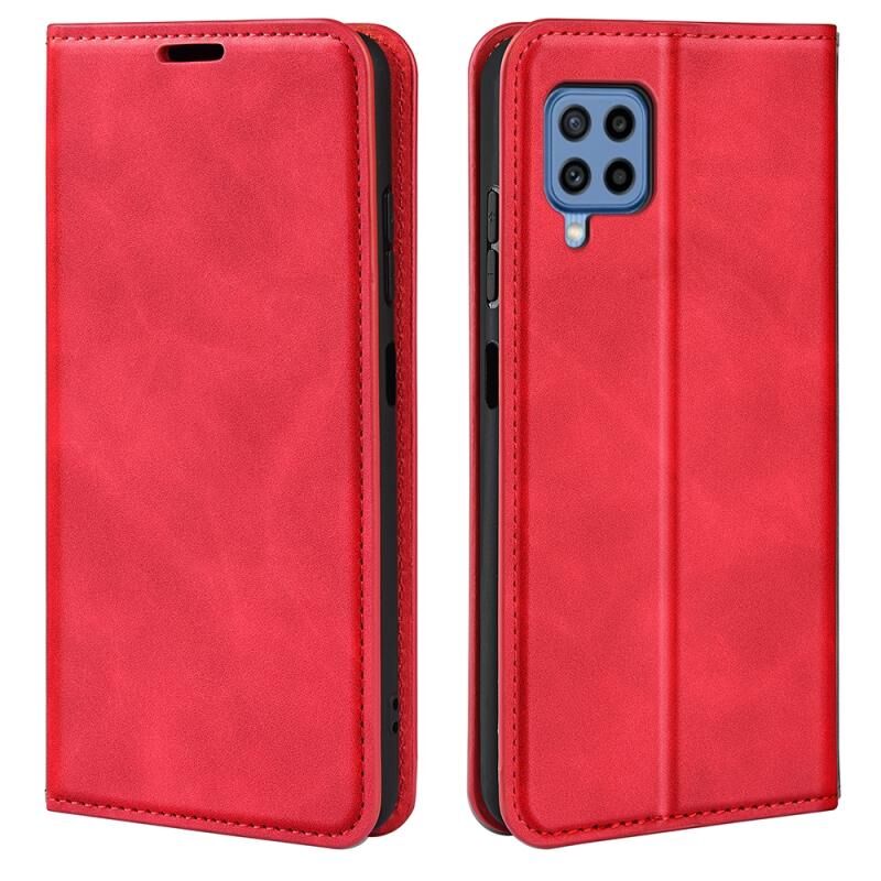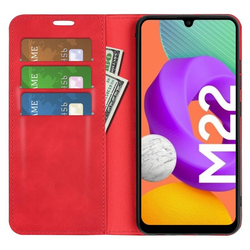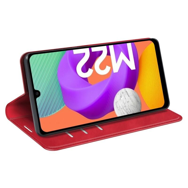 Για Samsung Galaxy M22 Retro-skin Μαγνητική δερμάτινη θήκη αναρρόφησης με θήκη & υποδοχές καρτών & πορτοφόλι (κόκκινο)