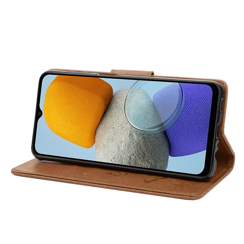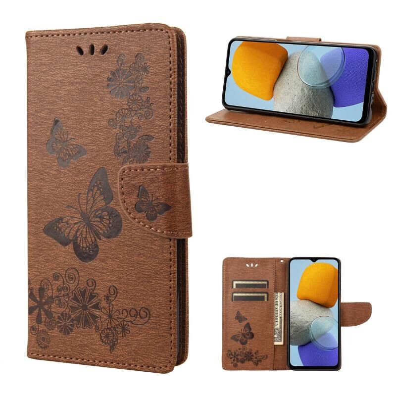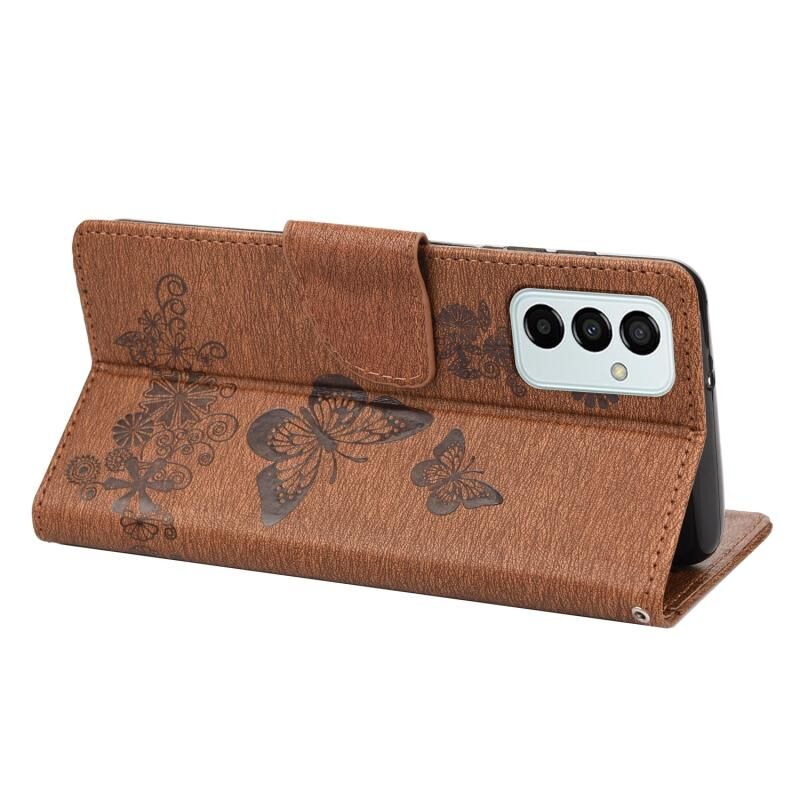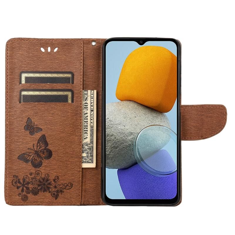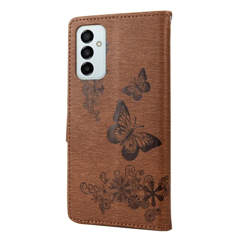 Θήκη τηλεφώνου Samsung Galaxy M23 5G με ανάγλυφο σχέδιο πεταλούδας από δέρμα (Καφέ)