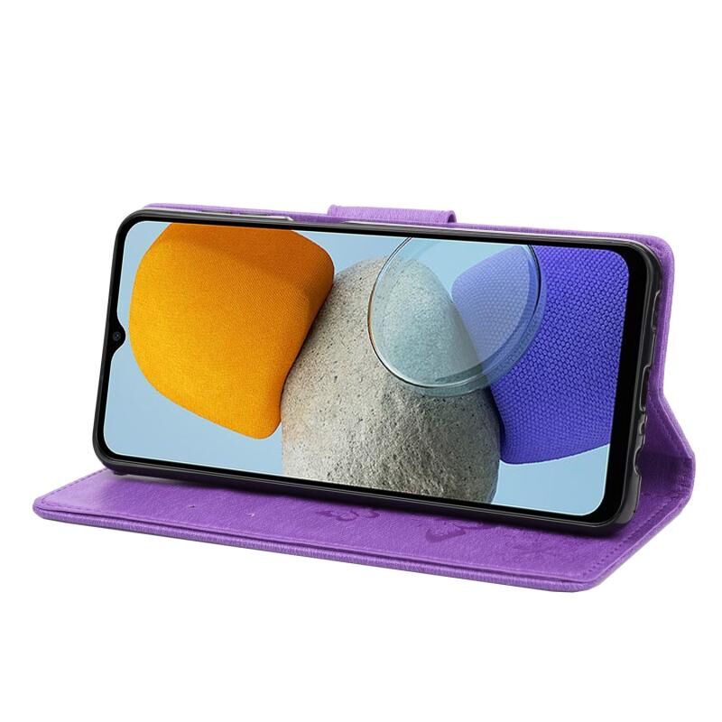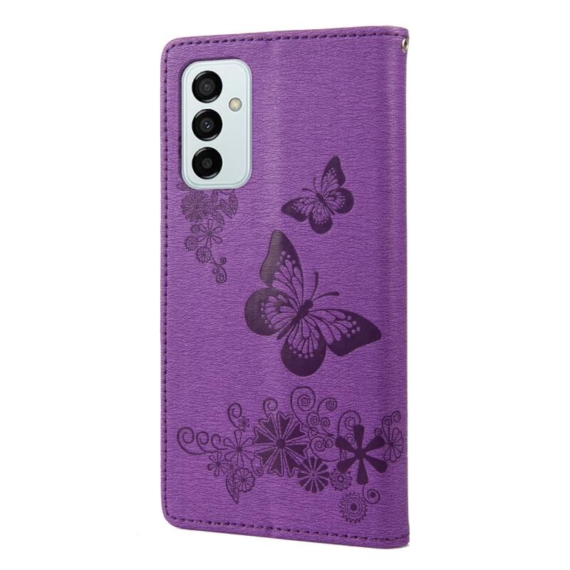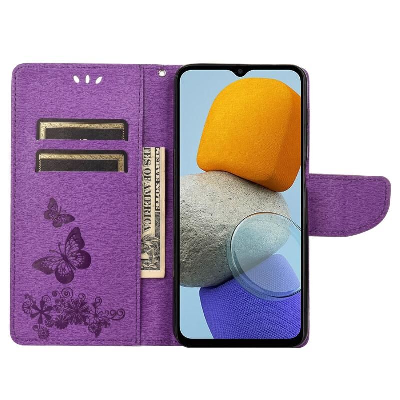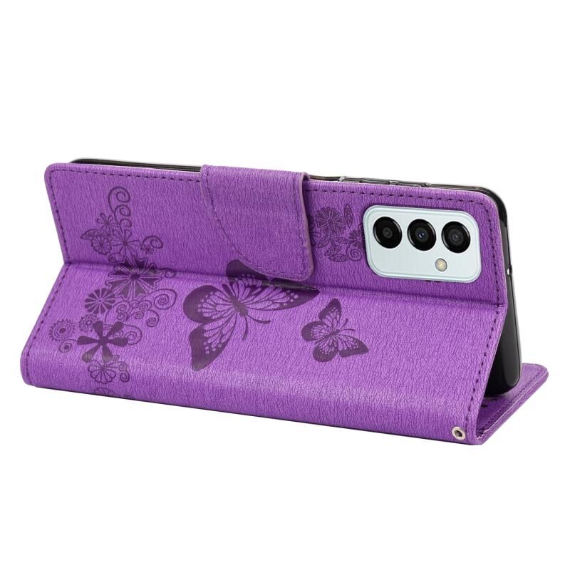 Θήκη τηλεφώνου Samsung Galaxy M23 5G με ανάγλυφο σχέδιο πεταλούδας από δέρμα (Μωβ)