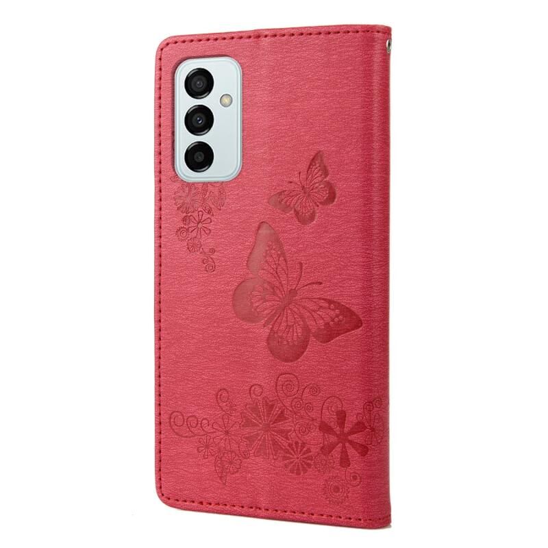 Θήκη τηλεφώνου Samsung Galaxy M23 5G με ανάγλυφο σχέδιο πεταλούδας από δέρμα (Κόκκινο)