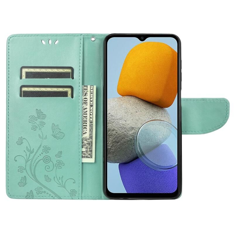 Θήκη τηλεφώνου Samsung Galaxy M23 5G, δερμάτινη, με σχέδιο πεταλούδας και λουλουδιών (Γκρι)