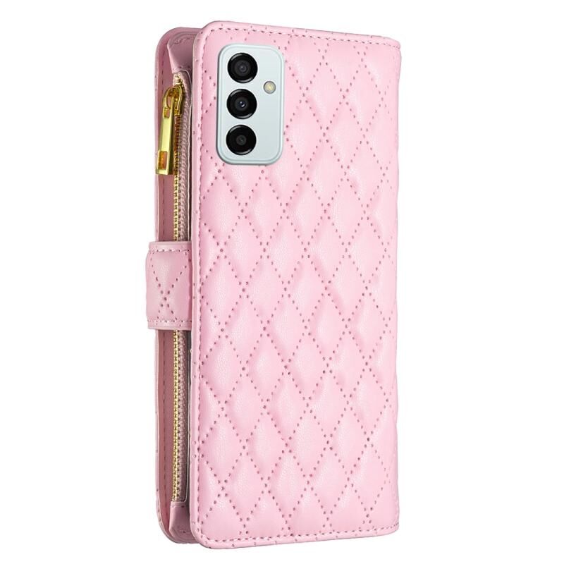 Θήκη τηλεφώνου Samsung Galaxy M23 5G, Δερμάτινη θήκη τύπου πορτοφολιού με φερμουάρ και διαμαντένιο πλέγμα (Λευκό)