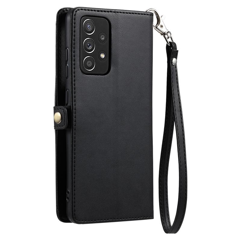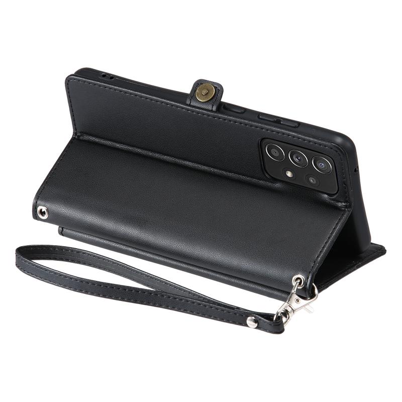 For Samsung Galaxy M23 5G / M13 4G Wallet Multi-card Slot Leather Phone Case with Lanyard(Black)