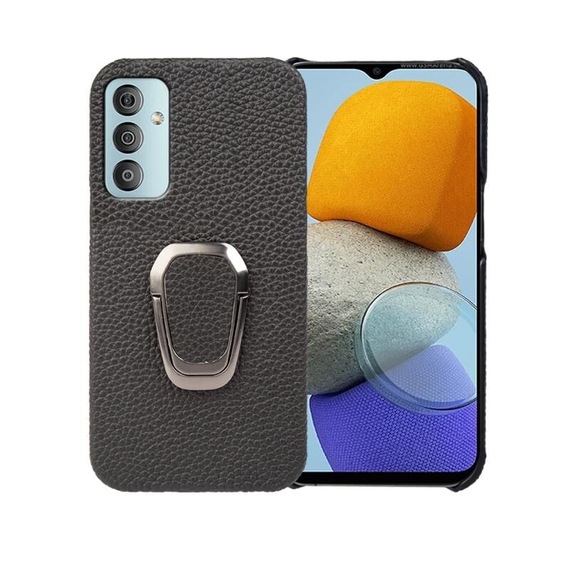 Θήκη κινητού τηλεφώνου Samsung Galaxy M23 5G με δακτύλιο στήριξης, γνήσιο δέρμα με υφή λitchi (Μαύρο)
